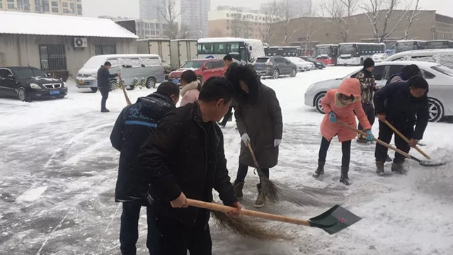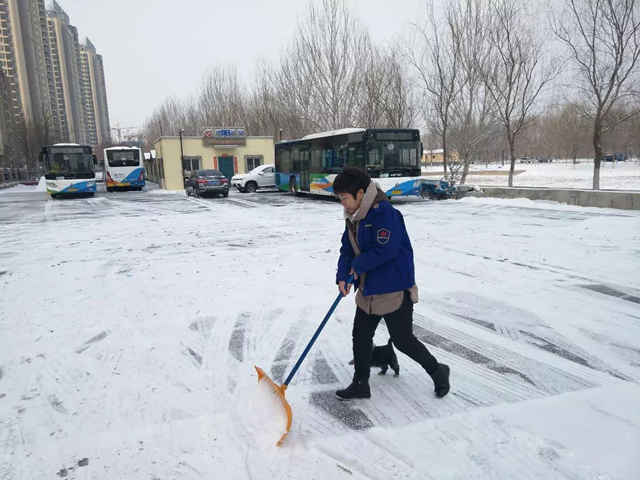 2019年2月15日、19日沈城兩次降雪,每一次的雨雪天氣的來(lái)襲,都是對(duì)全體一線(xiàn)公交人都是嚴(yán)峻的考驗(yàn)。面對(duì)惡劣天氣,各單位多項(xiàng)舉措在雨雪中連夜奮戰(zhàn),干部職工上下一心,紛紛提前到崗,清理場(chǎng)區(qū)、站區(qū)、車(chē)輛積雪,做好出車(chē)前的各項(xiàng)例行檢查,全力保障市民安全出行。大家不畏嚴(yán)寒、齊心協(xié)力、配合默契,忙碌的身影在雪天里形成了一道最亮麗的風(fēng)景線(xiàn)。