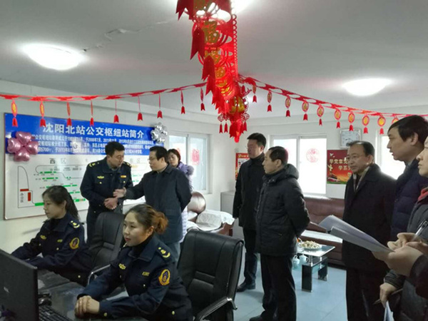 1月27日,大年三十上午,整座沈陽城都浸潤在濃濃的年味之中,客運(yùn)集團(tuán)北站南廣場公交樞紐站張燈結(jié)彩,到處洋溢著節(jié)日的歡樂。市長姜有為帶領(lǐng)市交通局局長李宏德,客運(yùn)集團(tuán)總經(jīng)理徐健、黨委書記劉文清、副總經(jīng)理周宇航等相關(guān)部門負(fù)責(zé)人,檢查我市2017年春運(yùn)保障工作,并對節(jié)日期間仍堅(jiān)守工作崗位、方便市民出行的公交駕駛員表示親切的慰問和感謝。