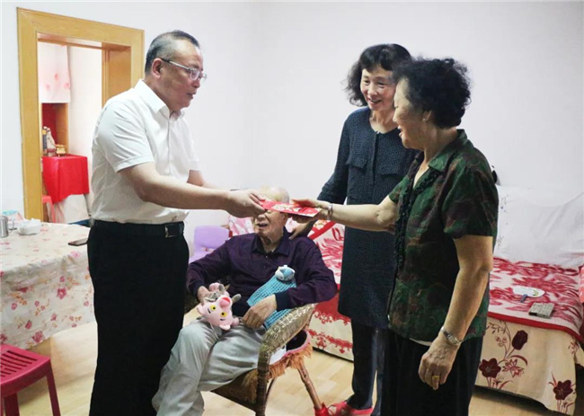 看到國資委主任及城投集團總經(jīng)理親自上門,李德春老人的愛人和女兒非常感動。孫百如拉著老人的手,關(guān)切地詢問他的生活起居、子女工作等情況,并了解到老人腿腳不便,需要常年雇人照顧老人起居生活。
