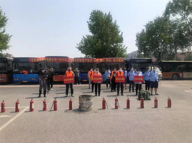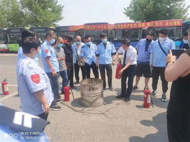 會后,在公司院內(nèi)進行實地演練,模擬公交車輛突發(fā)火災時,駕駛員在應(yīng)急情況下緊急停車,疏散乘客,正確使用滅火器進行滅火等內(nèi)容。