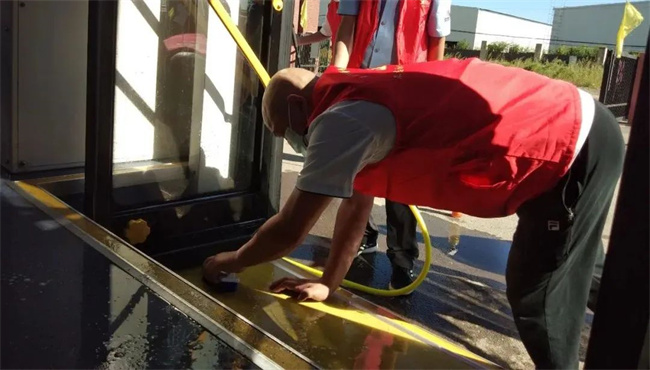 通運公司志愿服務(wù)隊來到239路車隊,細化防控措施,在公交停車場對乘客候車區(qū)進行不間斷消毒,同時協(xié)助公交駕駛員嚴格實行公交車返場后的集中消毒及車輛通風(fēng)、清潔等工作,特別是對車廂內(nèi)座椅、扶手等乘客易接觸的部位進行深度消殺,做到不留死角、不留盲區(qū),全方位保障乘客出行安全。