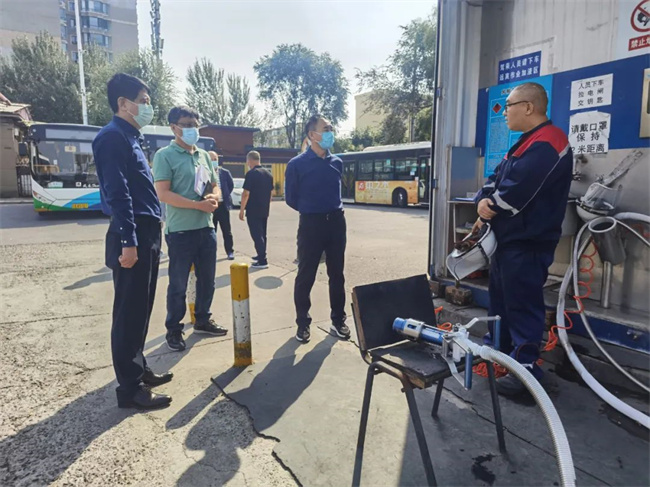 在通利公司場區(qū)院內,段九州副總經理檢查了場區(qū)院內公交車輛的安全設施,車輛充電設施,第三方加氣站周邊情況,場區(qū)內疫情防控舉措及實施情況。