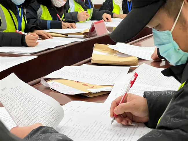 駕駛員筆答考試結(jié)束后,工作人員認真開展閱卷工作。