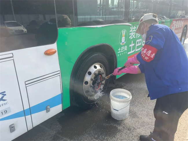 各車隊隊長帶領(lǐng)駕駛員擦洗運(yùn)營車輛,打掃車內(nèi)衛(wèi)生,駕駛員也自發(fā)加入其中,全力為乘客提供整潔舒適的乘車環(huán)境。
