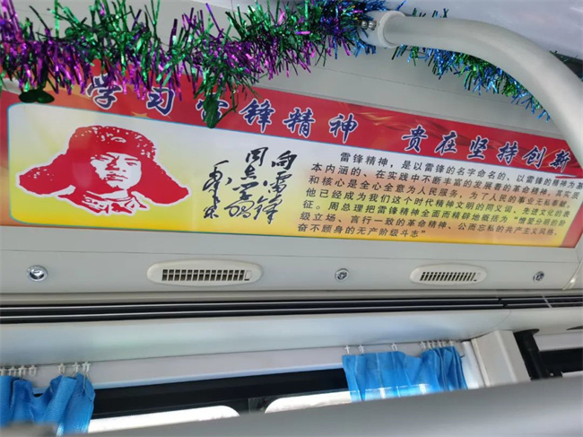 在3月5日當(dāng)天,209路車隊組織駕駛員、車上安保人員通過車廂展板內(nèi)容,對雷鋒的生平事跡進(jìn)行了全方位介紹,讓廣大職工了解雷鋒故事、學(xué)習(xí)雷鋒行為、傳承雷鋒精神。