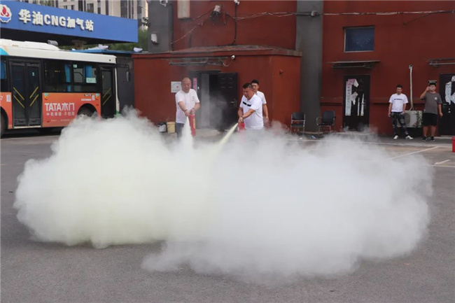 培訓(xùn)結(jié)束后,大家來到通運(yùn)公司院內(nèi),由李教官為大家進(jìn)行消防、反恐方面的指導(dǎo),并模擬公交車輛突發(fā)火災(zāi)事故時(shí),駕駛員應(yīng)如何采取緊急停車、開啟車門、切斷電源、疏散乘客到安全位置等應(yīng)急措施,以及如何正確使用滅火器進(jìn)行滅火的實(shí)操演練。