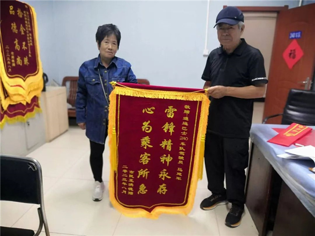 在最近一個(gè)月里,通運(yùn)公司240路駕駛員在學(xué)雷鋒過(guò)程中又做了不少好人好事。據(jù)統(tǒng)計(jì),車隊(duì)共收到了五面錦旗!