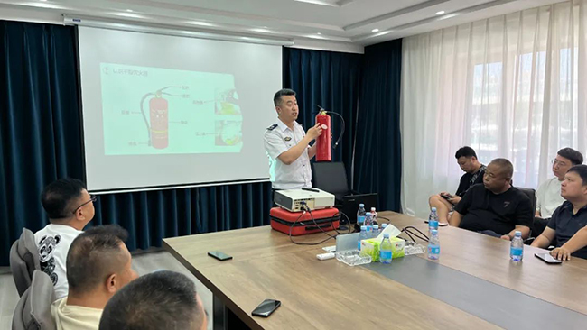 會(huì)議室內(nèi),黃教官通過(guò)課件和實(shí)操相結(jié)合的形式,用一件件真實(shí)發(fā)生的案例向大家講解了各類火災(zāi)的特點(diǎn)與應(yīng)對(duì)方法,以及遇到汛情及臺(tái)風(fēng)時(shí)的處理辦法等,并通過(guò)“提、拔、握、壓”四字口訣教會(huì)大家如何正確使用滅火器。