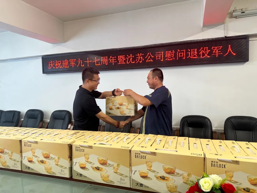 堅守不變初心,續(xù)寫嶄新榮光。在第97個建軍節(jié)來臨之際,為深入學習貫徹黨的二十大精神,厚植愛國主義思想,關愛退役軍人,增進職工對公司的歸屬感,近日,沈蘇公司舉辦慰問退役軍人活動。