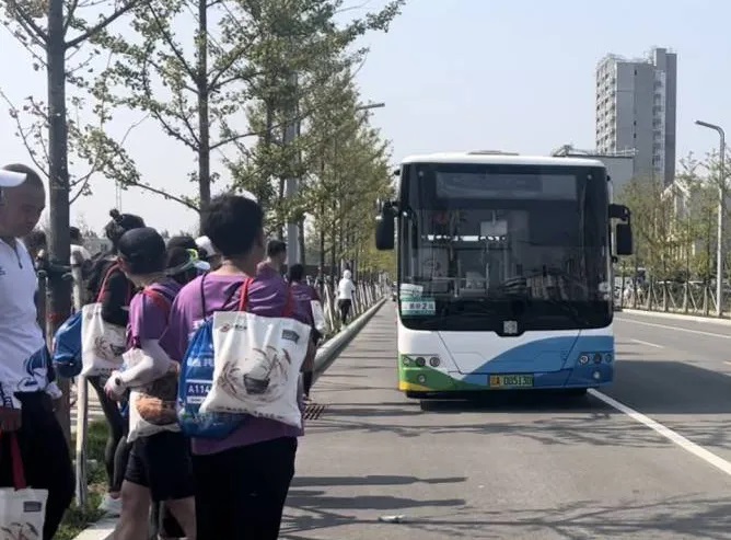 駕駛員們面帶微笑站在車旁,熱情地迎接參加“鐵馬”的跑友和志愿者們登車。“您好,歡迎乘車,加油!”“司機(jī)師傅辛苦啦!”……