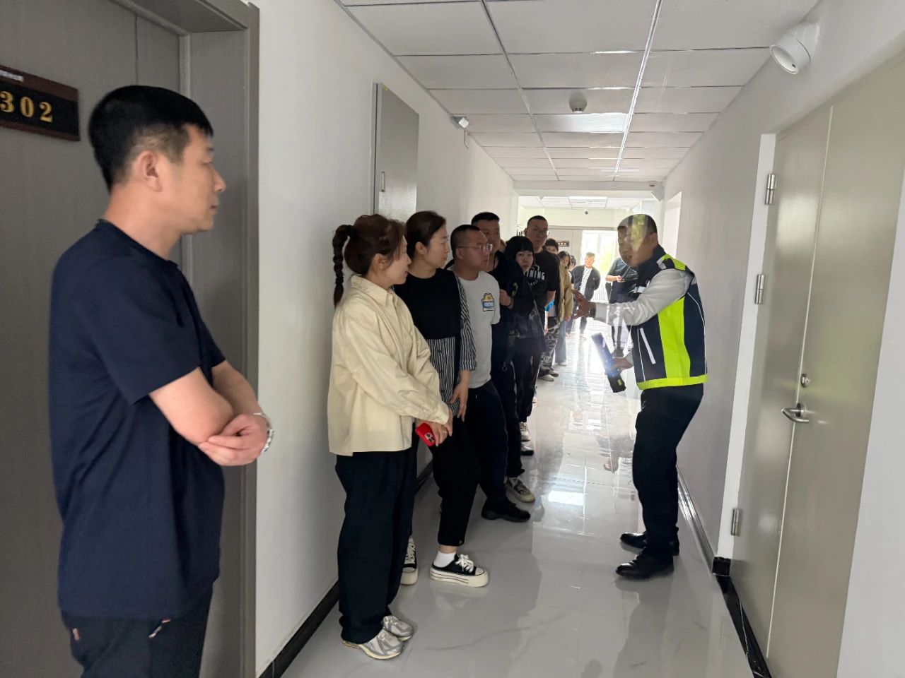 現(xiàn)場(chǎng)演練環(huán)節(jié),“火情警報(bào)”突然在辦公樓內(nèi)拉響,滾滾濃煙瞬間彌漫走廊。在疏散引導(dǎo)員的指揮下,大家迅速捂住口鼻,彎腰俯身,按照預(yù)定疏散路線,從各樓層有序撤離。整個(gè)過程緊張有序,大家爭(zhēng)分奪秒?yún)s不忘保持秩序,全體人員安全抵達(dá)指定疏散集合點(diǎn)。