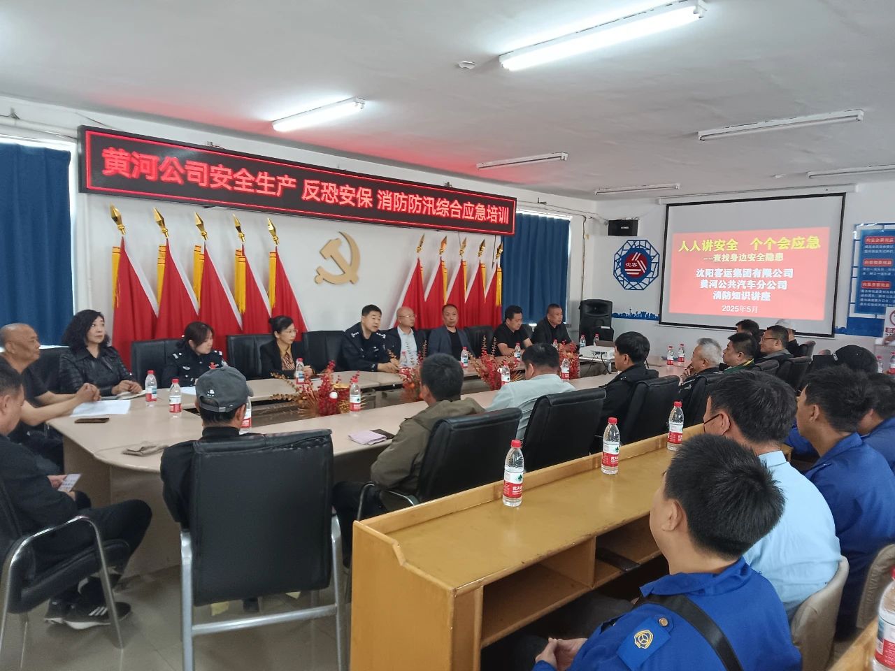 為提高職工的消防安全責(zé)任意識(shí),進(jìn)一步加強(qiáng)安全生產(chǎn)、反恐安保、消防防汛等工作,5月8日下午,黃河公司與票務(wù)中心聯(lián)合開展安保反恐消防培訓(xùn)及應(yīng)急演練。公交軌道分局王兆民處長,沈陽民安消防咨詢服務(wù)中心王殿陽主任,集團(tuán)相關(guān)部門負(fù)責(zé)人,黃河公司負(fù)責(zé)人、相關(guān)部門負(fù)責(zé)人、各車隊(duì)隊(duì)長及駕駛員代表參加了本次培訓(xùn)。