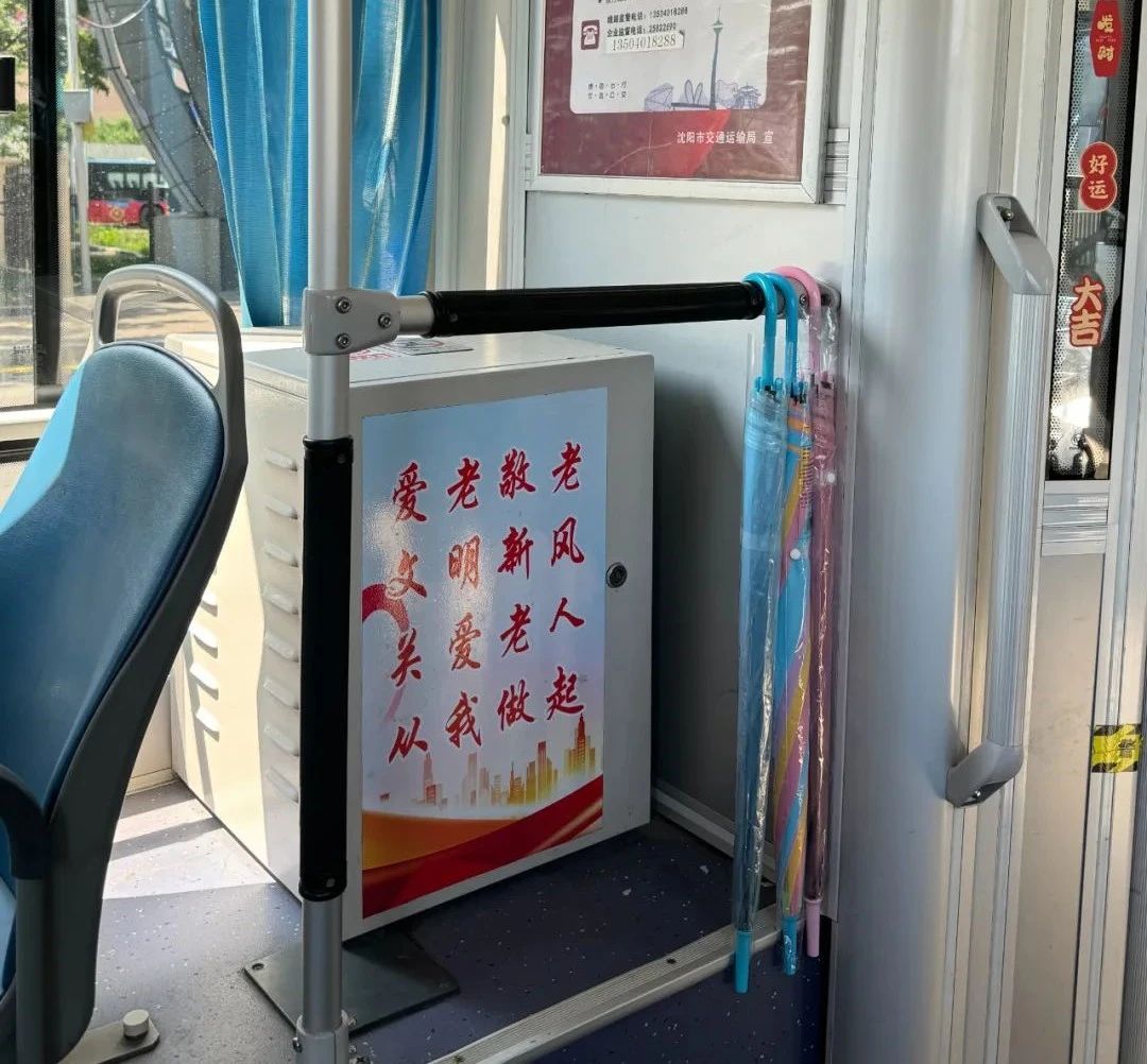 在240路的乘客中,老年乘客占比約55%,為提供更貼心、細(xì)心的服務(wù),車廂內(nèi)配備了一系列便民設(shè)施:急救藥品、口罩、老花鏡、針線以備不時之需;無障礙設(shè)施方便特殊乘客;愛心座椅專為老人、孕婦、兒童等群體設(shè)置;“愛心雨傘”保障雨天出行無憂。這些設(shè)施充分體現(xiàn)了以乘客為中心的服務(wù)理念。