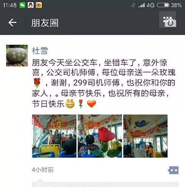“歡迎您乘座黃河公司299路公交車,送您一只康乃馨,祝您節(jié)日快樂!”這是母親節(jié)當天,299路駕駛員孫仁稼的一句問候?!笆墙o我的?謝謝,謝謝師傅!”收到康乃馨的乘客們感到非常驚喜,她們的臉上透著感動的笑容。這一天,孫仁稼的車廂里充滿著母親節(jié)的溫馨。乘客們紛紛留言贊美,轉(zhuǎn)發(fā)朋友圈傳遞喜悅。