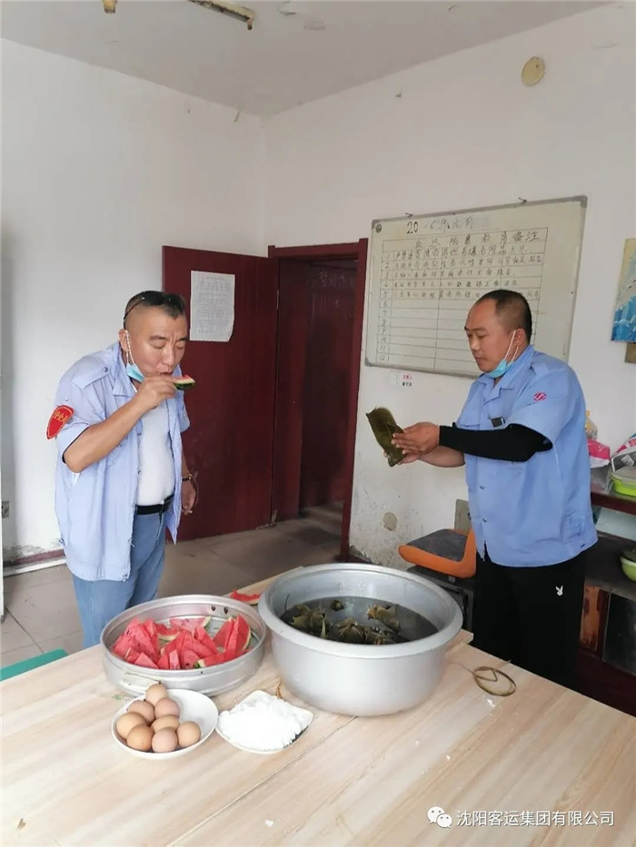 端午節(jié),239、252車隊為一線員工準備了粽子、雞蛋、水果等食品,駕駛員們吃粽子頂雞蛋,享受著節(jié)日的快樂。
