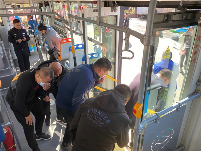 消防安全演練中,李教官在公交車上講解安全錘的正確使用方法,并模擬公交車失火后的逃生方法及注意事項,迅速、有序、規(guī)范地從公交車出口疏散。隨后,李教官詳細(xì)介紹滅火器的正確使用方法及滅火時的注意事項,現(xiàn)場指導(dǎo)職工進行滅火演練。