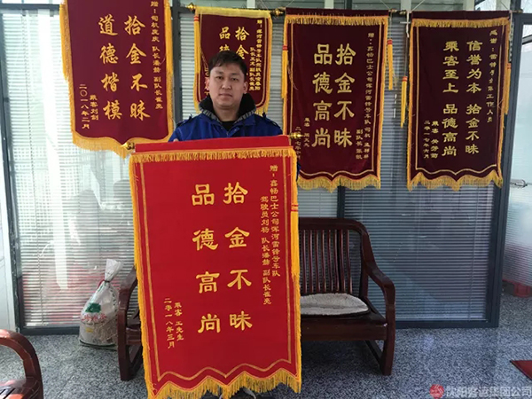 3月19日,失主王先生來(lái)到渾河雷鋒號(hào)車(chē)隊(duì),將一面寫(xiě)著“拾金不昧、品德高尚”的錦旗贈(zèng)送到了渾河雷鋒號(hào)車(chē)隊(duì)。劉楊拾金不昧的善舉,傳遞了渾河雷鋒號(hào)車(chē)隊(duì)的精神,也向社會(huì)傳遞了正能量。